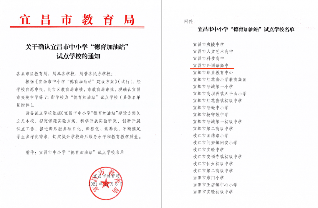为全面落实中央“双减”政策,提升学校课后服务水平,满足学生多样化需求,结合市教育局的部署,本学期开学伊始,我校开启了特色德育加油站的筹划、申报和建立工作。2021年12月,我校被正式确立为宜昌市中小学“德育加油站”试点学校。