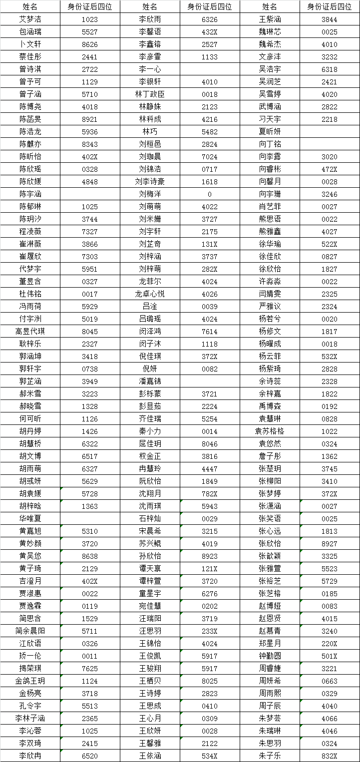 我校于2024年6月25日举行了自主招生考试,根据考生测试成绩,结合我校自主招生计划确定入选资格考生名单。现将宜昌市外国语高中2024年自主招生入选资格考生予以公示,名单附后。