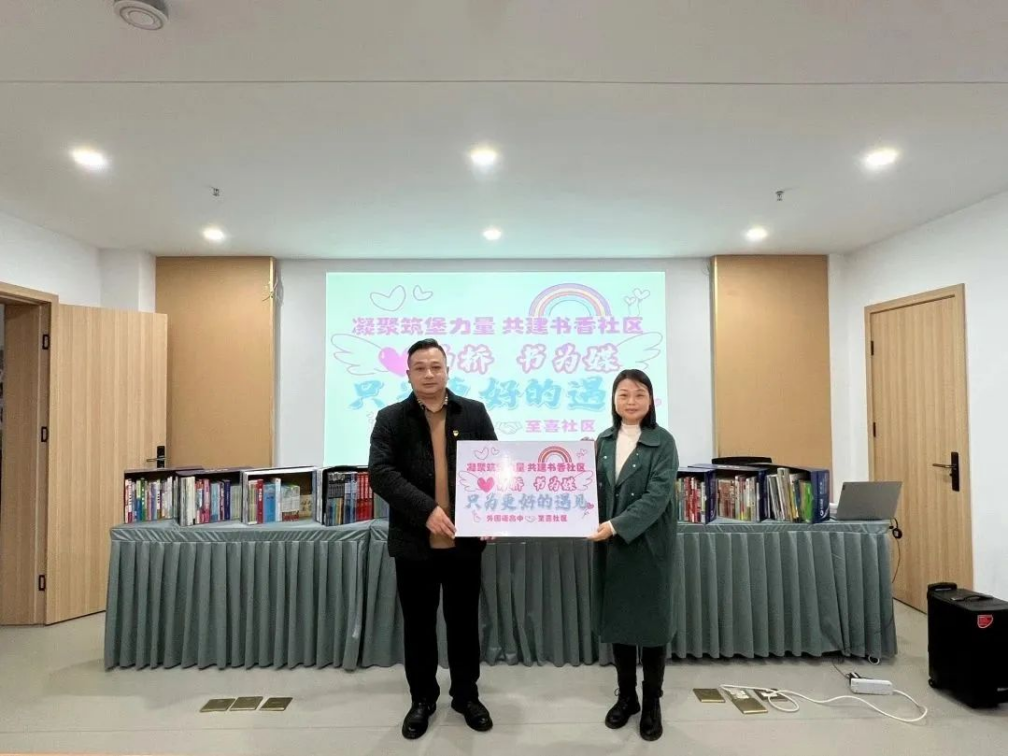 为解决至喜社区急难愁盼的图书角问题,宜昌市外国语高中在师生中发起捐书活动,共收到师生赠书200余册。在此基础上,学校投入资金近5000元采购图书200余册。11月21日,宜昌市外国语高中校长黄文坚、党总支书记邹靖和筑堡工作队队员顾林娜、李梦莲为至喜社区送去了学校和师生的爱心书籍。
