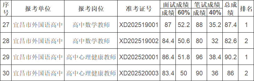 根据《宜昌市2025年“招才兴业”教育系统事业单位校园专项公开招聘公告•西南大学站》安排,现将宜昌市教育局所属事业单位2025年“招才兴业”校园专项公开招聘各岗位综合成绩公告如下: