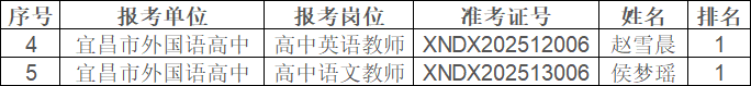 根据《宜昌市2025年“招才兴业”教育系统事业单位人才引进校园招聘公告•西南大学站》安排,经过面试,确定宜昌市教育局所属事业单位2025年“招才兴业”人才引进校园招聘各岗位体检人员名单(宜昌市外国语高中)如下: