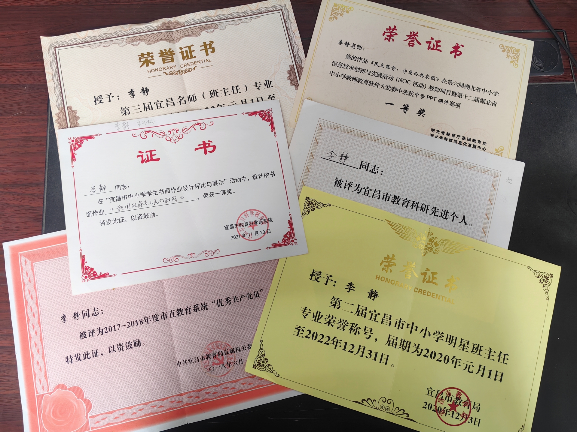 十五载,她默默耕耘、潜心教研、智慧育人,同时也收获着自己的快乐和幸福。先后荣获:“湖北省noc课件制作一等奖”、“二等奖”、省“红旗飘飘,引我成长”征文指导二等奖、参与省级课题《高中生学习行为、学习方式与有效教学研究》、参与省级课题《情怀教育》,国家级期刊《中国教师》发表文章《浅谈新课程下的高中政治》、省级期刊《宜昌教育》发表文章《用爱为孩子们撑起一片天空》、“宜昌市第二届明星班主任”、“宜昌名师”、“2023年宜昌市中小学青年教师教学竞赛二等奖”、“宜昌市教育科研先进个人”、“宜昌市市级优课”、“宜昌市教育系统优秀共产党员”、“宜昌市基础教育1+1+N学科中心组成员”“区德育先进个人”、论文《思政课教学中学生价值观教育的路径探讨》市二等奖、所带班级荣获“市十星文明班级”称号、多次荣获“校明星班主任”、“校骨干教师”“校我最喜欢的老师”、“校三八红旗手”、“校优秀教育工作者”等荣誉称号。