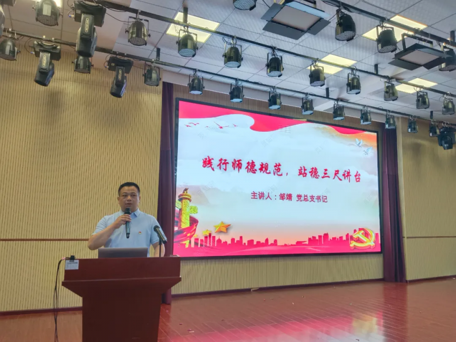 为了进一步推动纪律学习教育,5月9日宜昌市外国语高中党总支书记邹靖同志以“践行师德规范,站稳三尺讲台”为主题讲授纪律学习教育专题党课。