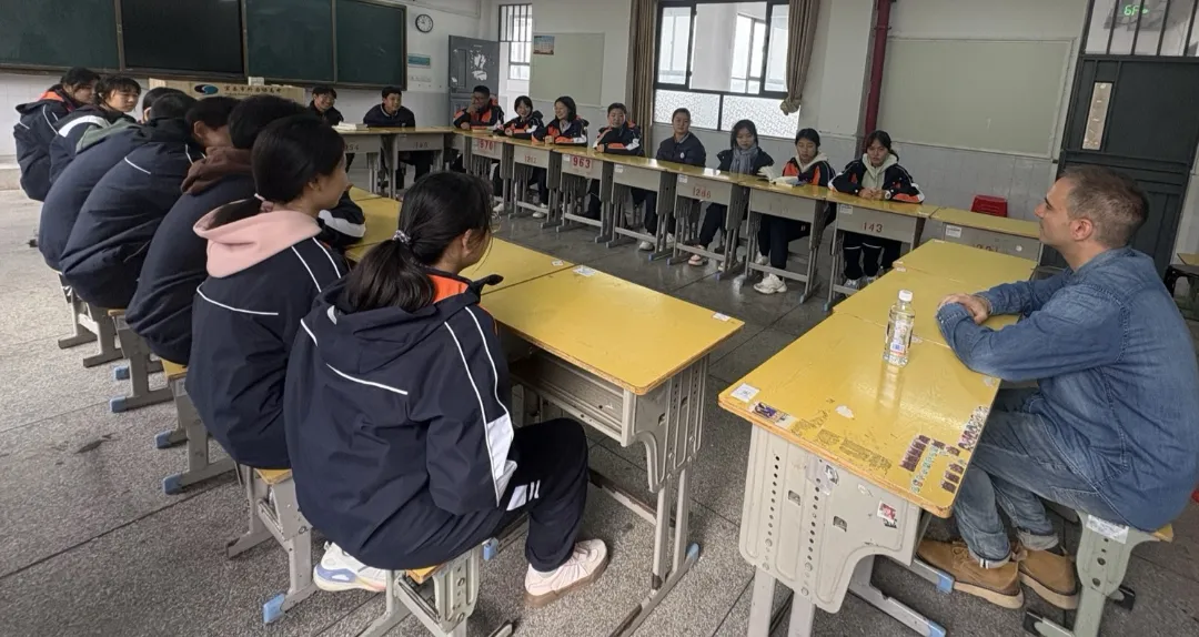 在圆桌会议中,西班牙外教Carlos与我校西班牙语班学生进行了深入的对话和互动。首先,Carlos老师向同学们介绍了西班牙的历史、传统和足球文化,分享了他在中国的生活以及在中国教授西班牙语的教学趣事。随后,我校的师生们提出了许多关于西班牙语学习和跨文化交流的问题,Carlos耐心地一一解答,并鼓励学生们多参与国际交流,亲身体验不同文化。