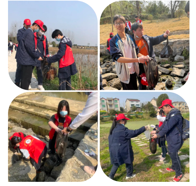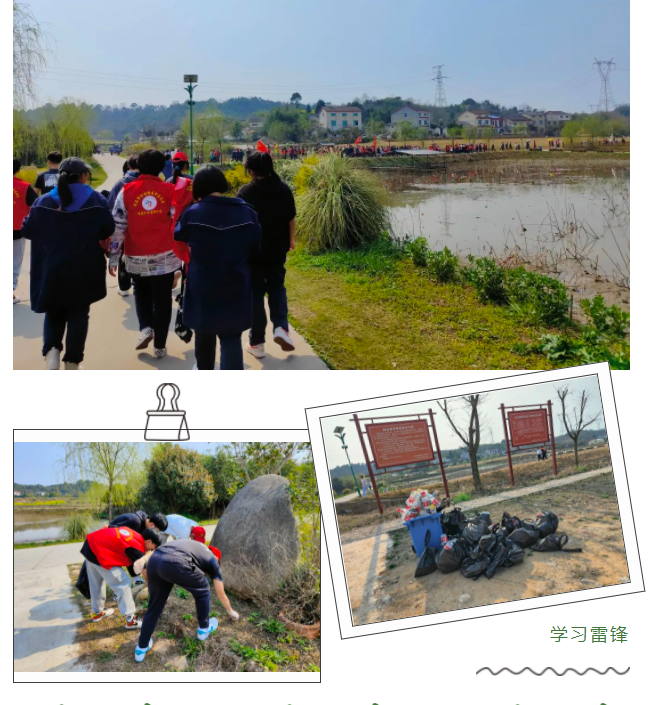 “累不累?”“不累!”“老师你看,荷塘里还有个塑料瓶!”“来,搭把手,我去捡回来!”同学们坚定有力的声音萦绕在耳边,志愿服务的暖流流入每个村民的心间,雷锋精神在同学们的行动中传承!