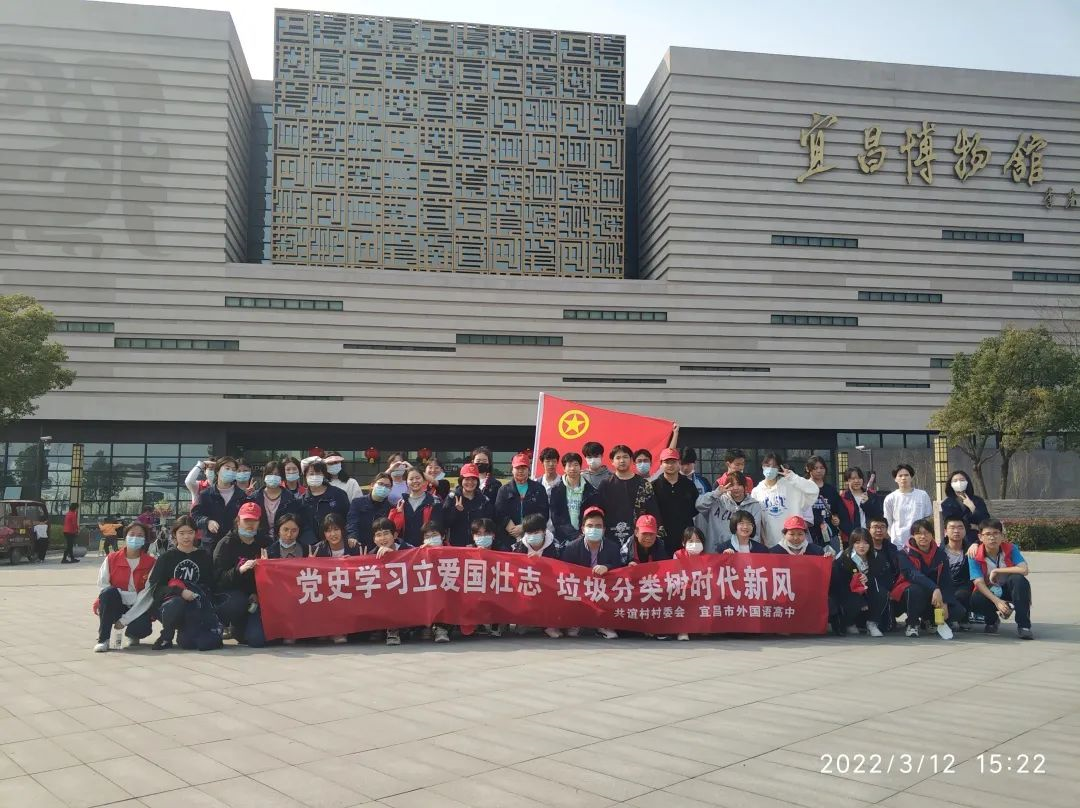 同时间的3月12日下午,高二(5)班的同学们远赴伍家岗区共谊村。深入社区开展志愿活动。同学们首先听取了工作人员的讲解,认真学习了垃圾分类的相关知识,并向社区居民宣传垃圾分类。与此同时,同学们身体力行,开始垃圾回收活动,装满的垃圾袋的背后是同学们辛勤的劳作,也是同学们志愿精神的体现。在社区活动结束后,同学们就近来到了宜昌市博物馆,在讲解员的讲解下,认真学习党史和宜昌市发展史,家国情怀在这里落地生根。