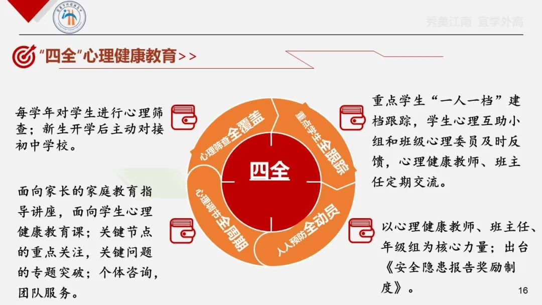本次活动从课题申报到组织老师参与,到积极筹备制作微课,再到荣获奖项,都离不开学校领导的重视与各部门的大力支持。心理健康教育一直是学校日常教育工作的重点,我校成立了以谭小红校长为组长,分管德育副校长李晓蕊为副组长,各处室主任、年级主任、班主任、心理健康教师为成员的工作机构,建立了 “四全”心理健康教育体系:1、心理筛查全覆盖。2、重点学生全跟踪。3、心理调节全周期。4、人人预防全动员。