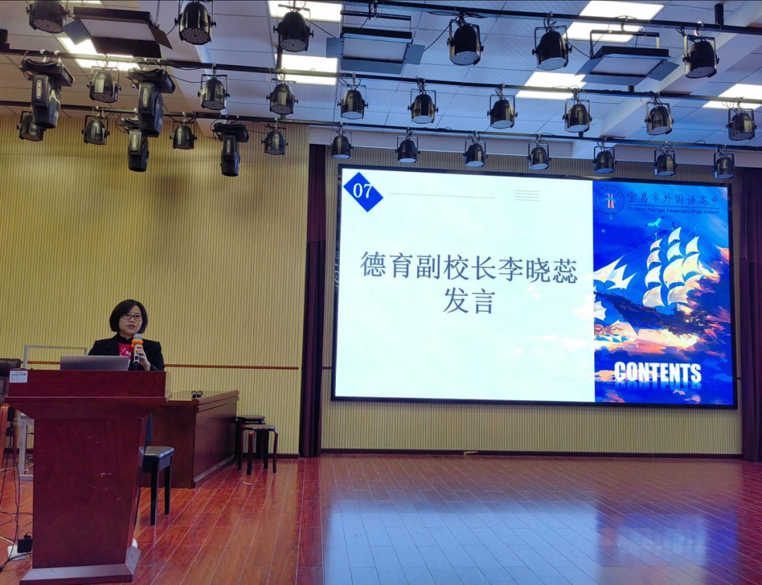 德育副校长李晓蕊致辞,她指出过去的一年,全体学生干部以行动为笔、以奉献为墨,书写了服务大局、服务同学的优秀答卷,为学生的自主管理做出了重要贡献。她寄语全体学生干部,坚定选择、坚守初心、踏实作为,勇做理想者、担当者、吃苦者、奋斗者,用不懈奋斗和优异成绩谱写属于外高学子的华美乐章。