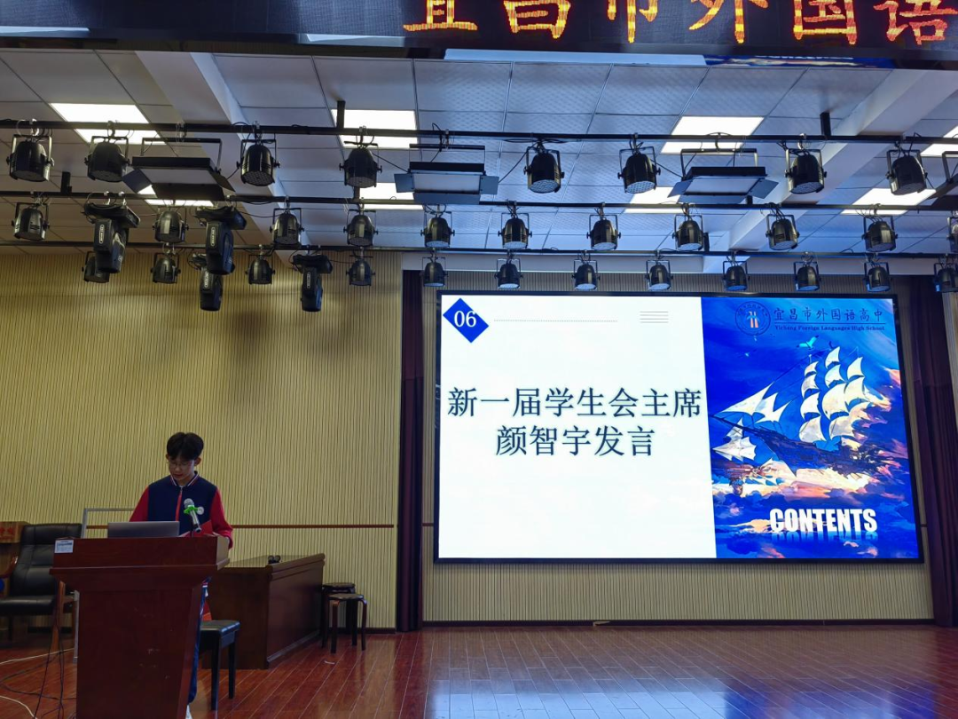 新一届学生会主席颜智宇同学对领导老师们的信任、学长学姐的指导、“战友们”的相互支持表示感谢、表达感恩,表示将接好“接力棒”,努力工作、奋发作为,用实际行动为学校创造新成绩、作出新贡献。