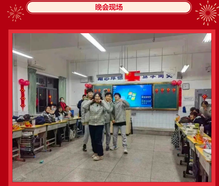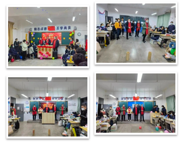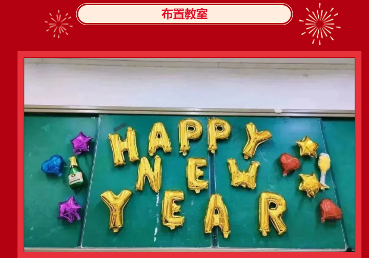 金虎归山辞旧去,玉兔下凡迎春来!迎着落日余晖,校园里开始张灯结彩,彩灯、气球、鲜花、灯笼,同学们把各班教室布置得异彩纷呈,整个校园洋溢着喜庆欢快的节日气氛。