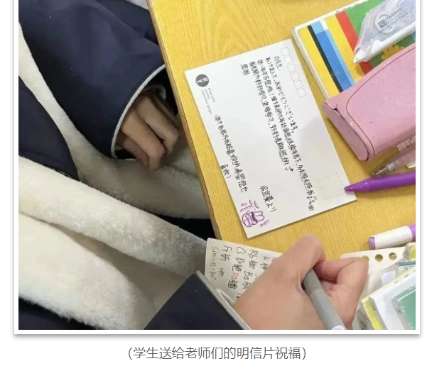 同学们用明信片的方式传递祝福,送给老师,送给朋友,笔端流淌着浓浓的情谊。纸短情长,情谊最珍贵。