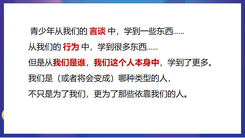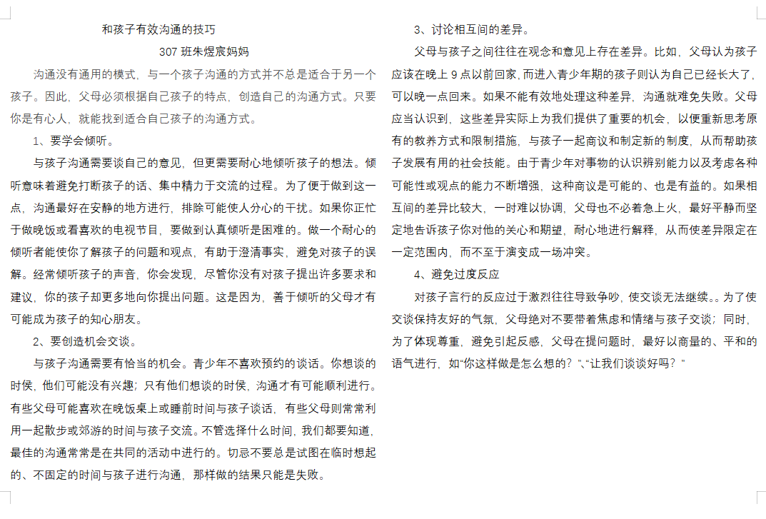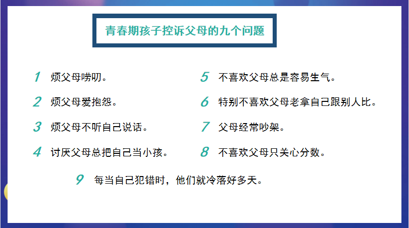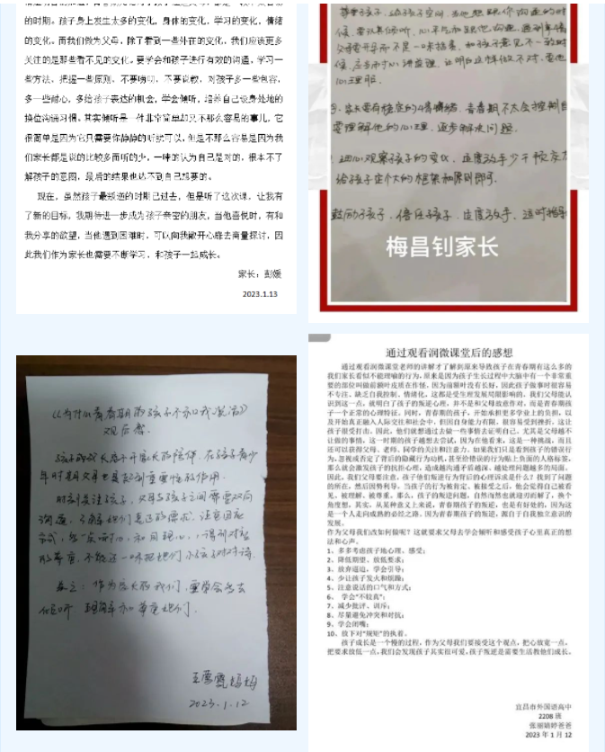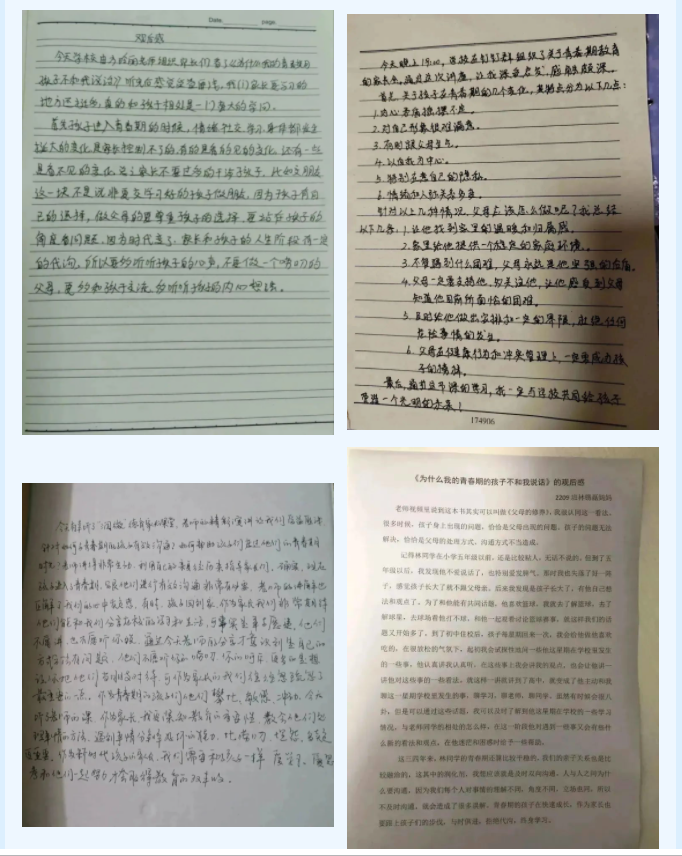 通过今天的学习,让我们做父母更加了解了青春期孩子的特征,怎样与孩子进行有效地进行沟通、引导及其保持良好的亲子关系。也认识到父母在孩子心中的重要性,要学会有效表达的情感,不要让孩子有负罪感,学会理解与尊重不要存在代沟,关注孩子的情绪网络问题并建立良好的家庭和谐氛围。总之:作为青春期孩子的父母,要不断学习并在学习中去成长,结合青春期的孩子的表现迎接带来的挑战,学会享受孩子对父母的依恋。站在孩子的角度去帮他解决问题,安全度过青春期。——向文心家长