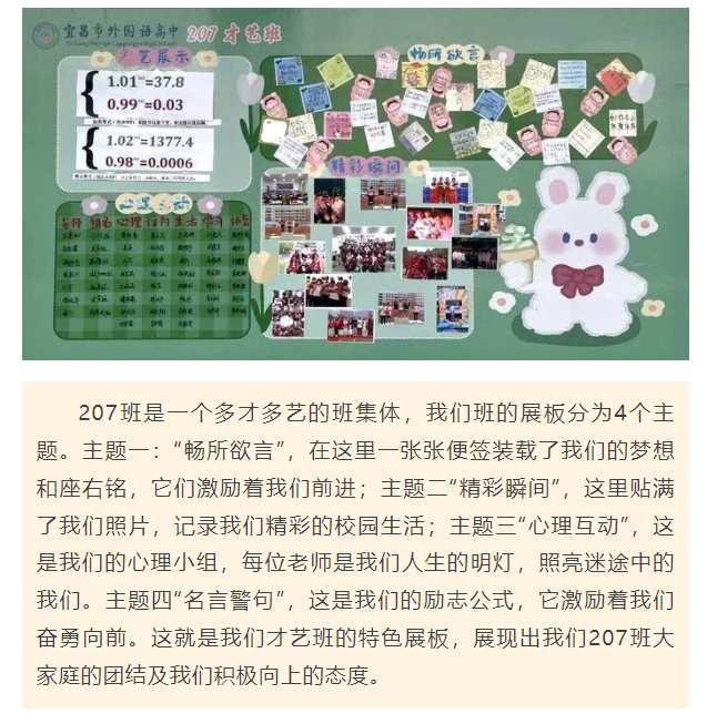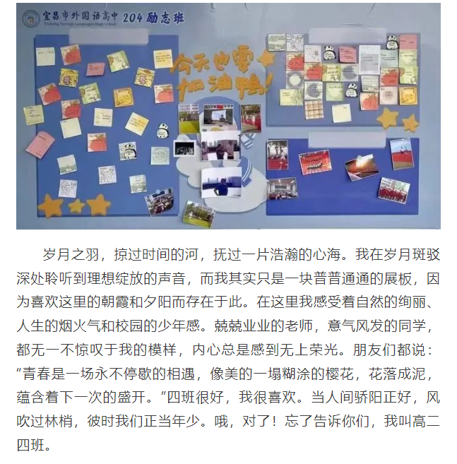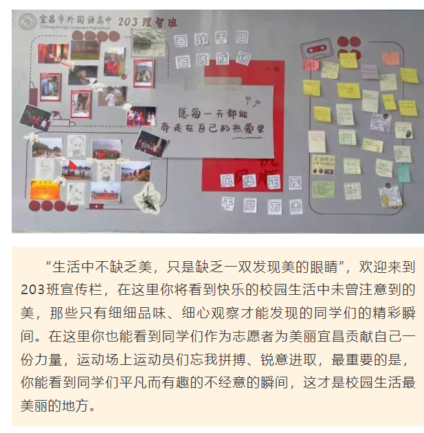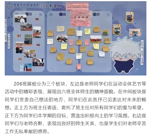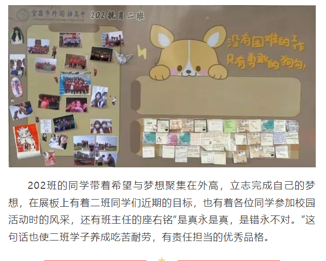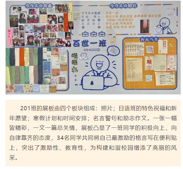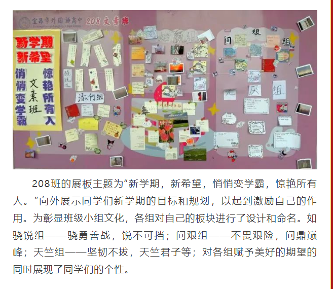 教室外展板变成了学生创造的天地,既为每一位学生提供了展示才华、挖掘潜能、发挥聪明才智的舞台,也展现了外高学子的精神风貌,增强了班级的凝聚力。