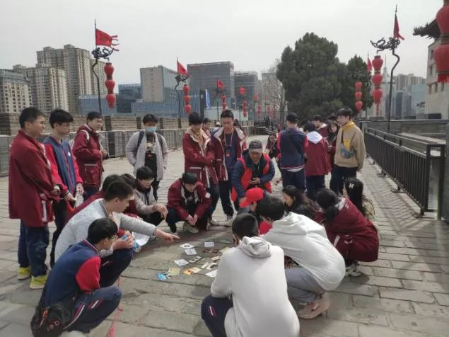 在城墙上,同学们不仅学习了关于古城墙的历史文化知识,还做起了历史文化游戏。大家围成一个圈,按照“周、秦、汉、唐”的顺序拿取卡片,活动既有趣又有意义,孩子们都乐在其中,非常开心。