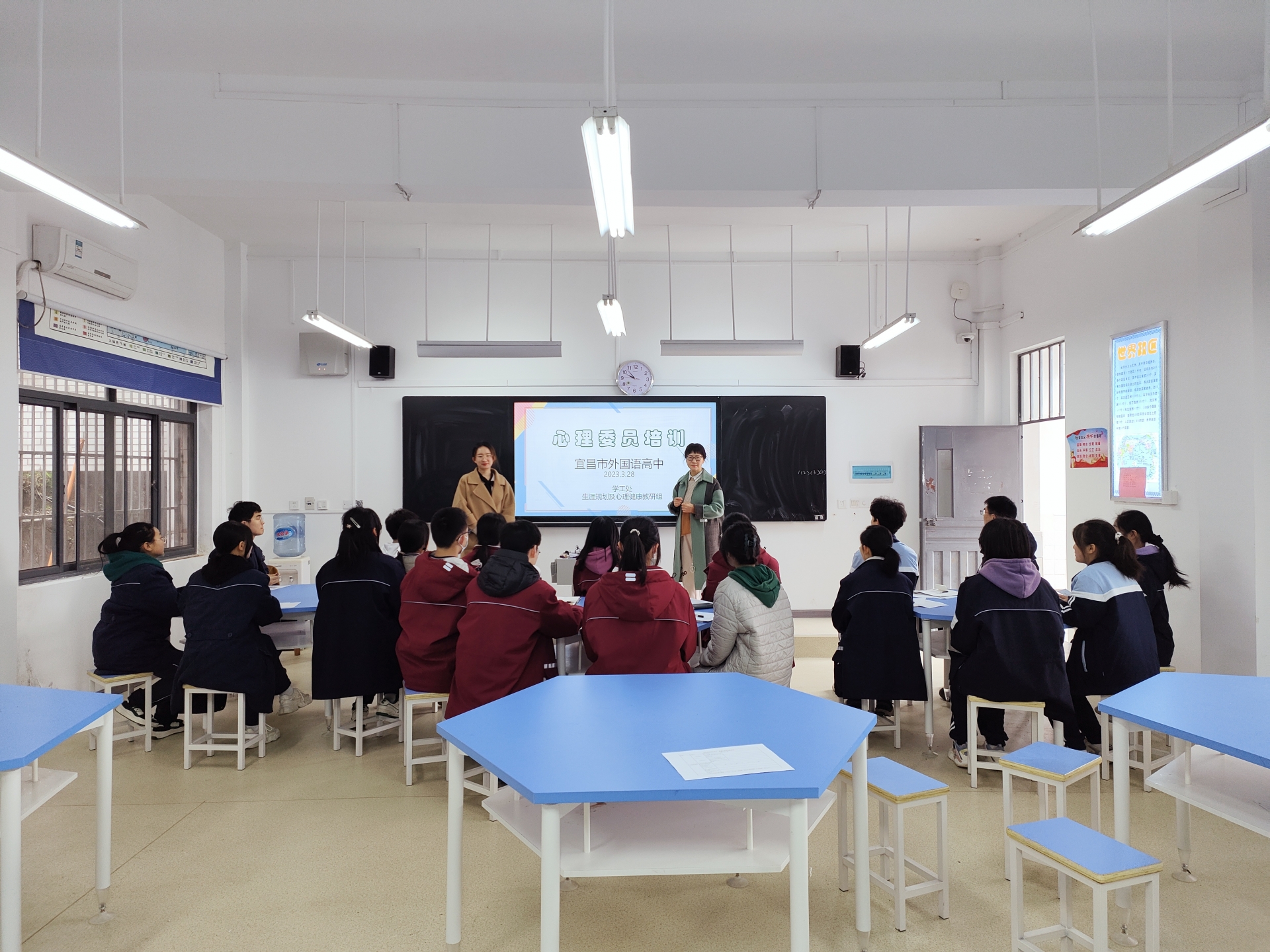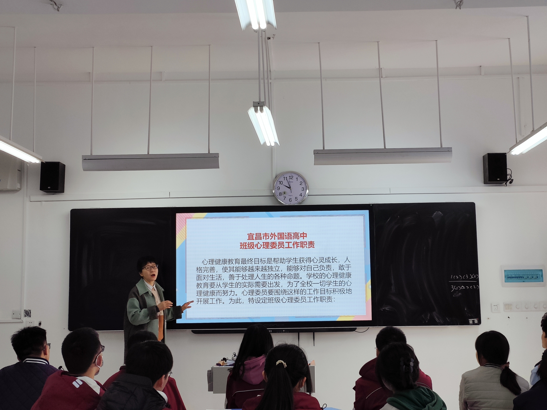 为深入普及心理健康知识,提高心理委员工作的专业性和有效性,宜昌市外国语高中学生成长加油站于3月28日上午,组织开展了心理委员培训会,本次培训由心理健康老师卢曼、向瑛主讲。