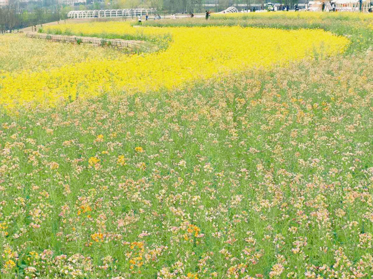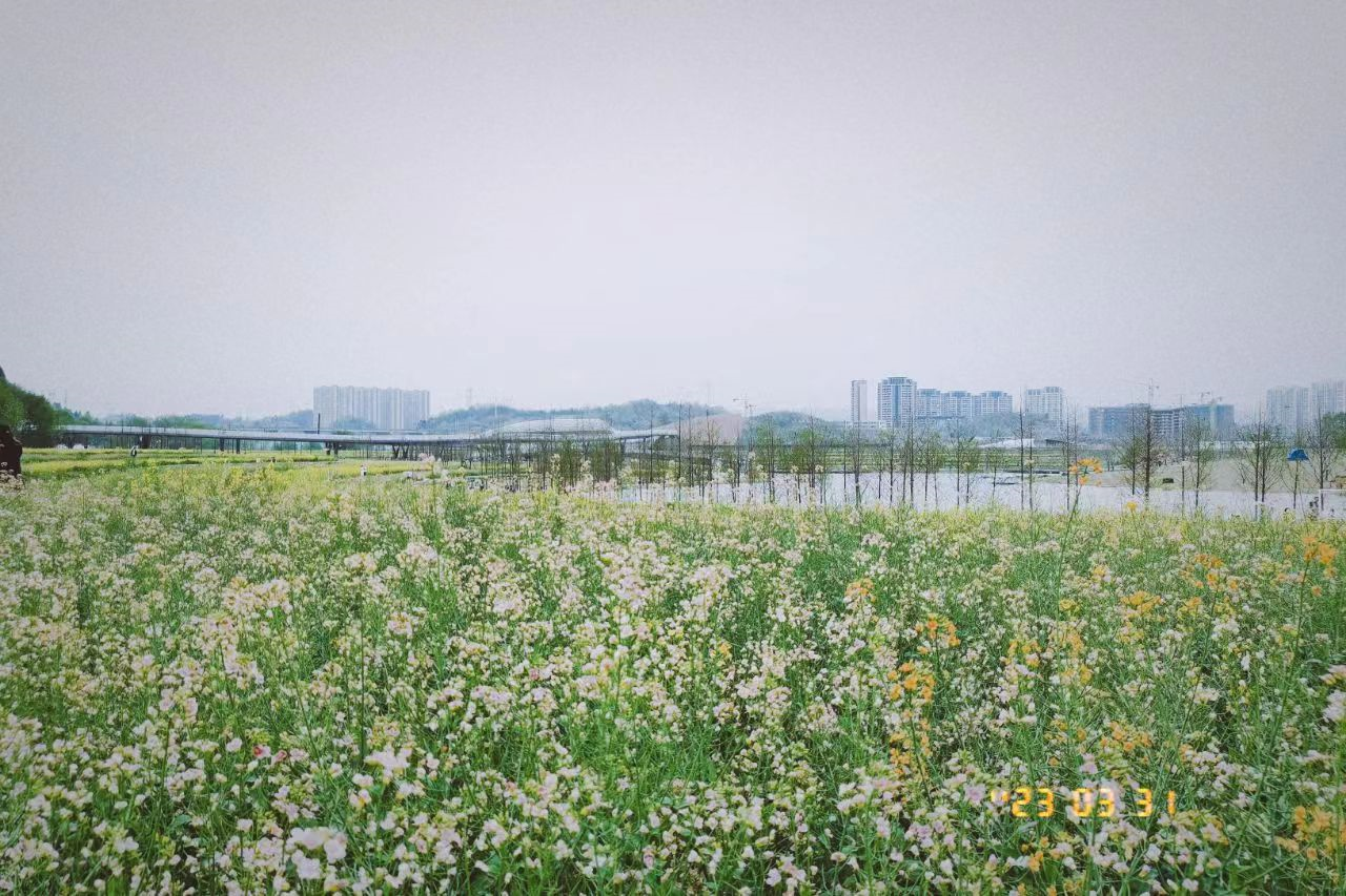 仲春时节,草长莺飞,野鸭戏水,蜂舞花田,园里好一片“热闹景象”。清风徐来,道路两边杨柳依依,金黄的油菜花与天边夕阳相连,澹澹湖面碧波荡漾,激起阵阵涟漪。