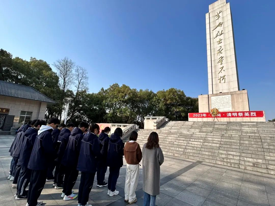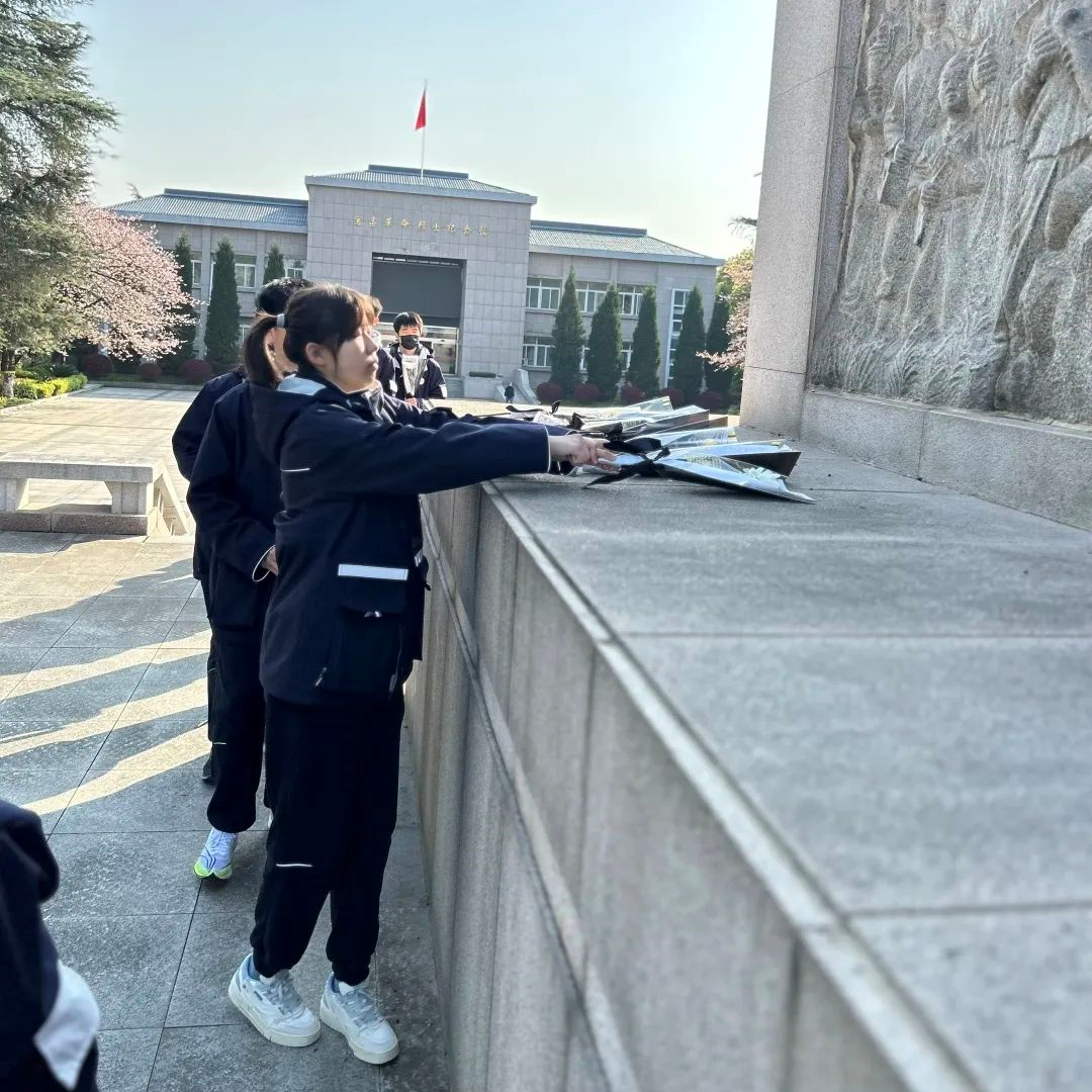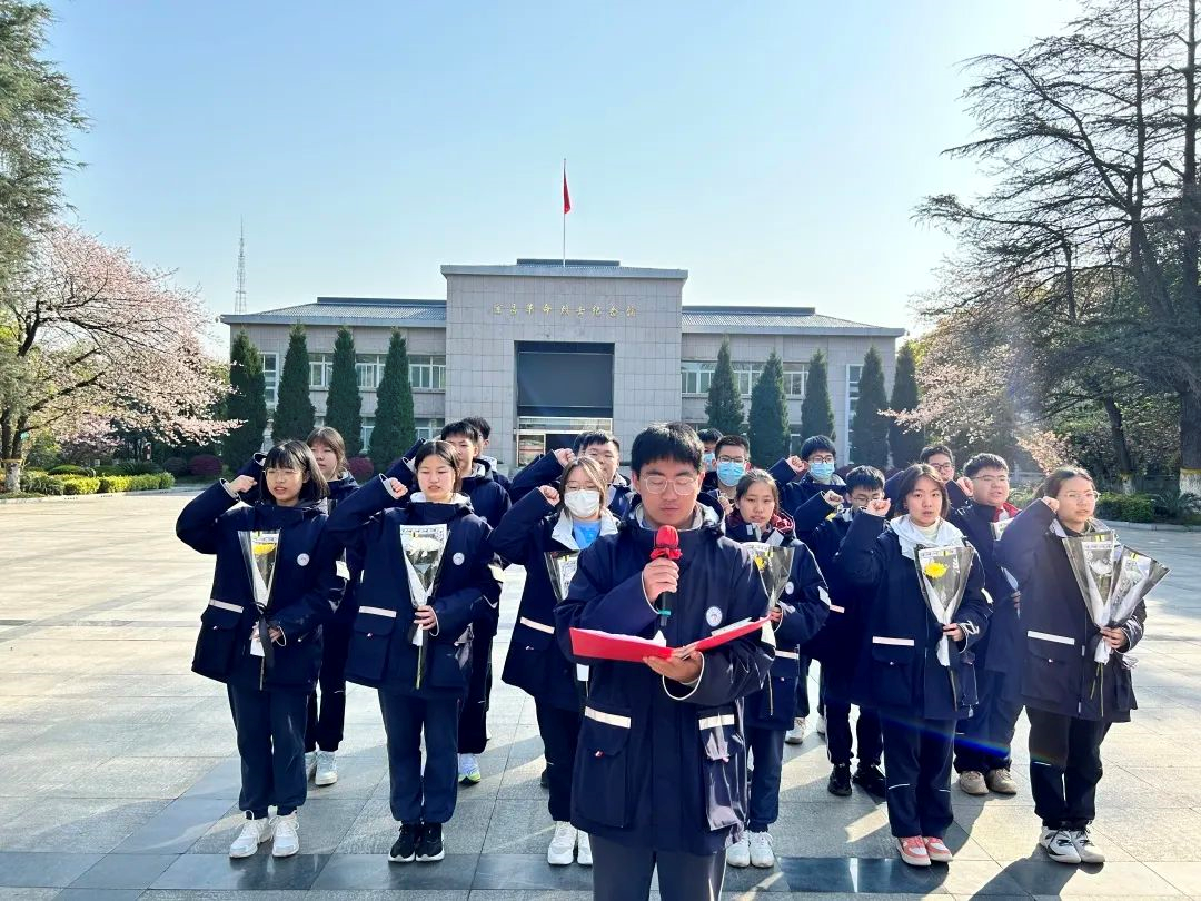 3月30日,团委向瑛老师、杨柳老师,学工处方玲丽老师带领团员代表抵达烈士陵园。同学们快速集结成整齐的方阵队列,严整有序地走向烈士纪念碑。清风寄哀思,翠柏传敬意。在烈士纪念碑前,全体师生肃立默哀,向长眠于此的革命先烈寄托浓浓哀思。