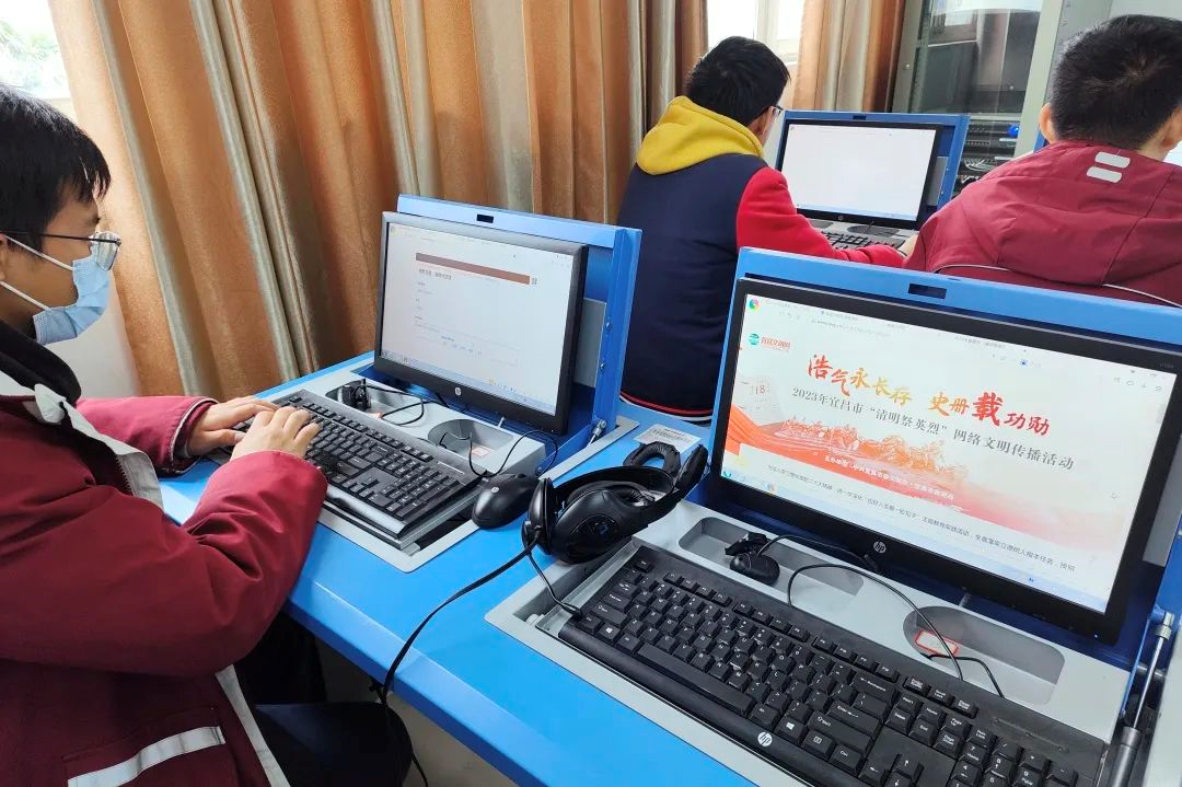 3月29日,校团委在学校机房,开展了2023年清明祭英烈主题活动。同学们参与宜昌文明网主办的清明线上祭扫活动。学习浏览先烈功勋事迹,在线献花,书写留言寄语。丰碑屹立,精神长存,慎终追远,家国永念,向一切为中华民族和中国人民作出贡献的英雄先烈们,致敬!