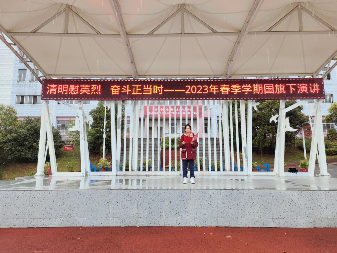 4月3日,我校开展以《清明慰英烈,奋斗正当时》为主题的国旗下演讲,2108班的孟思彤同学向大家介绍了清明节的习俗,号召同学们铭记那些用生命担当使命、坚守初心、默默奉献的英雄,珍惜来之不易的幸福生活,以英雄为榜样,学习他们忠诚爱国、勇于担当、勇于斗争的坚毅精神,用实际行动告慰烈士的忠魂,积聚前进的力量。