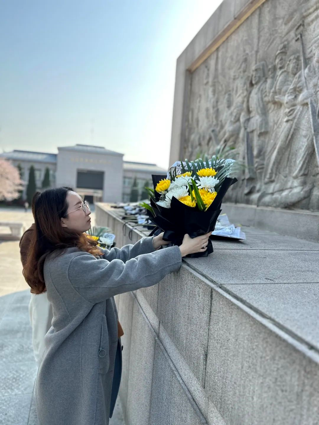 鲜花献英烈,哀思祭忠魂。师生相继走到烈士纪念碑前,献上手中的鲜花,以最崇高的敬意祭奠革命先烈,寄托缅怀之情。山河已无恙,英雄请安息!