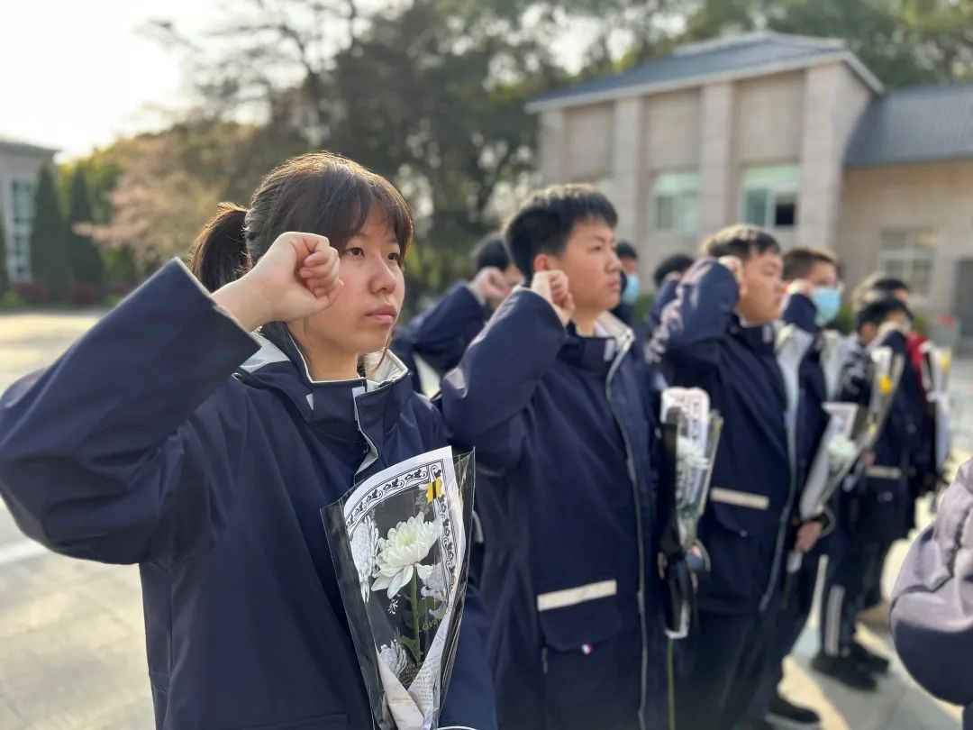 学生代表2208班胡浚熙发言,表达了对革命先烈的崇敬和爱戴,号召外高学子继承先烈遗志,永葆先进本色,发奋图强,坚韧拼搏,为实现伟大中国梦而努力奋斗!