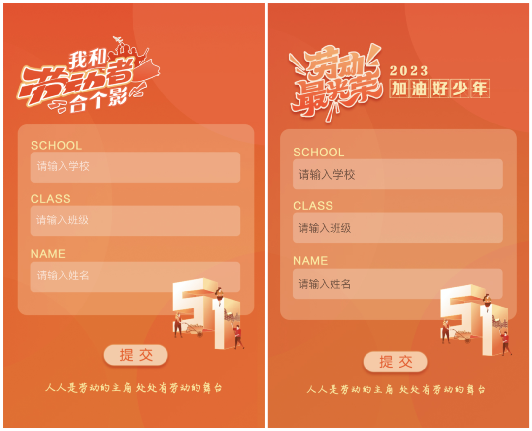 第四步,上传学生劳动图片,一键生成个人专属海报,长按图片下载保存。