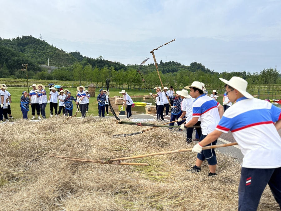 同学们将收好的油菜全部放到了油菜收割区,进行油菜脱粒。同学们扬起连枷,用力地将连枷打在金黄的油菜杆上,豆荚里的菜籽瞬间破壳弹出。