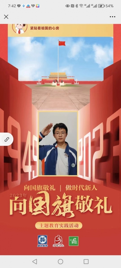 为将爱国主义精神烙印在每个学生的心中,学校组织全体同学积极参与“向国旗敬礼”线上寄语活动。同学们纷纷在网上向国旗致敬,用最坚定的信念、最真挚的情感、最美好的祝福庆祖国74周年华诞。
