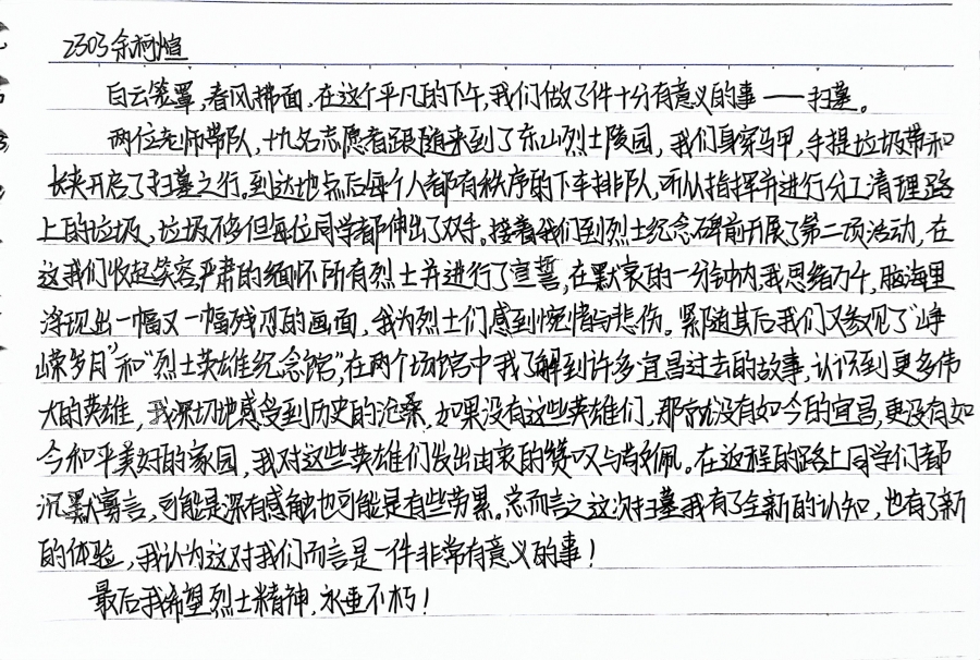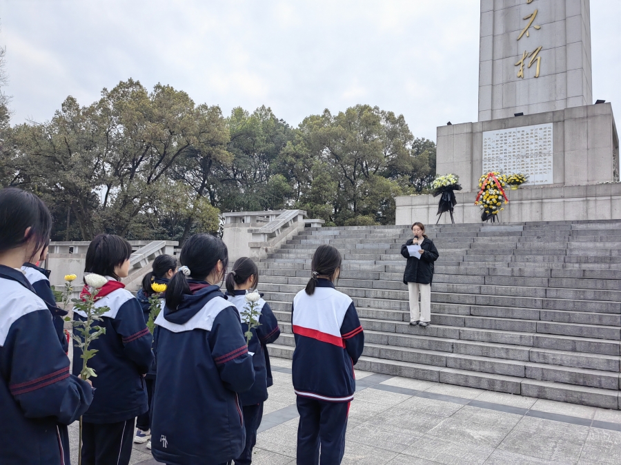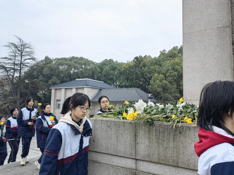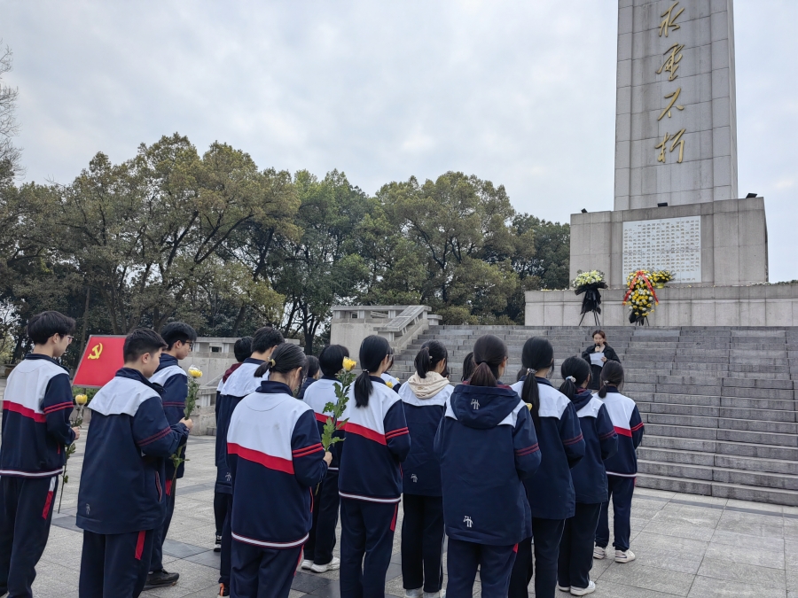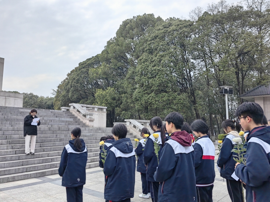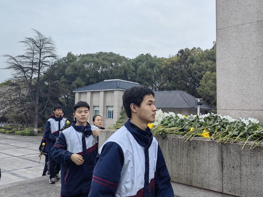团委向瑛老师、杨柳老师带领学生代表抵达烈士陵园门前。同学们快速集结成整齐的方阵队列,严整有序地走进烈士陵园,并自发组织清理路旁的垃圾和杂物,为尊重和守护烈士陵园的环境贡献自己的微薄之力。