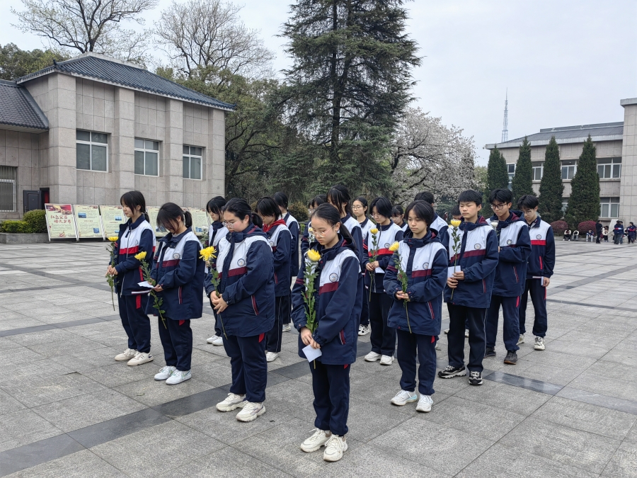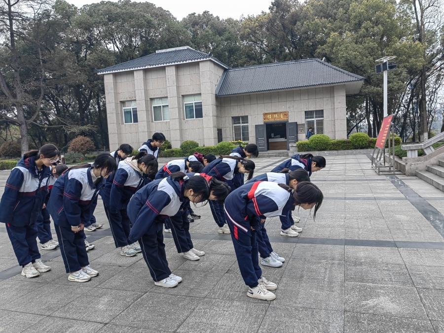 清风寄哀思,翠柏传敬意。在烈士纪念碑前,全体师生肃立默哀,向长眠于此的革命先烈寄托浓浓哀思。