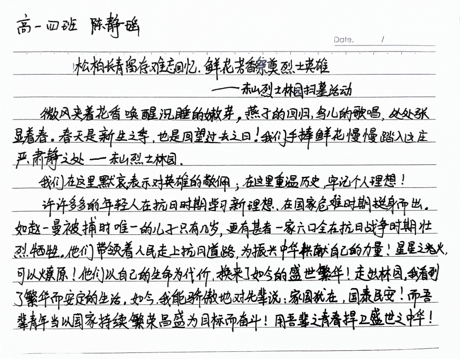 青春正逢盛世,奋进正当其时。希望同学们学习革命先烈不怕牺牲、勇往直前的革命精神,心怀家国,积极进取,奋发有为!努力成长为有理想、敢担当、能吃苦、肯奋斗的新时代好青年!