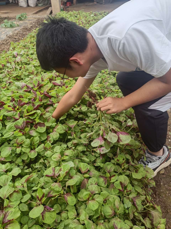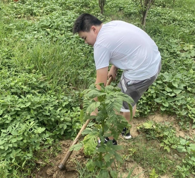 同学们挥舞着锄头,采摘果实,清除杂草,下地干农活。晨兴理荒秽,带月荷锄归,感受“归园田居”的快乐,体验到劳动之美,在劳动中播种希望、收获果实,在劳动中磨炼意志、锻炼自己。