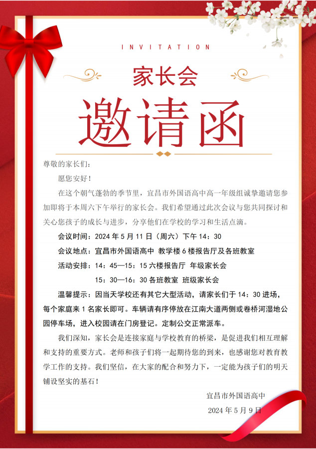 少年自当扶摇上,衔星揽月逐月光。孩子是家庭的未来,是国家的希望,有着无限的希望与可能。为进一步增进学校与家庭、教师与家长的沟通和交流,促进孩子健康、幸福成长与发展,让每一位家长能进一步了解学校的教育理念、教育方式,2024年5月11日下午,高一年级隆重召开了高一年级家长会。老师们与家长们共赴一场以爱为名的成长之约,齐心静候满园花开。