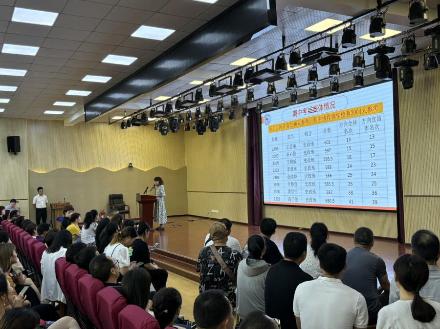 高一年级主任顾林娜对高一下学期学生的学习、生活进行了总结,表扬了高一年级在前期取得的成绩与收获,同时指出了高一年级普遍存在的问题,希望整个高一年级上下一条心,戒骄戒躁,在共同目标的引领创造佳绩。