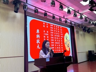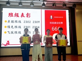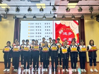 年级主任顾林娜在学生表彰后发表了热情洋溢的讲话,对同学们上半学期的表现进行了总结,充分肯定了同学们所取得的成绩,并对下半学期的学习提出了新的要求和期望。她希望同学们能够继续保持积极向上的态度,不断挑战自我,追求卓越,为未来的发展打下坚实的基础。顾主任在此次表彰大会中还为前期表现优异的班级颁发了奖项,启动了年级组的班级建设资金,鼓励各班级积极开展班级活动,增强班级凝聚力。