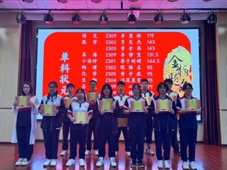 砥砺奋进正当时,乘风破浪再扬帆。大会在庄重而热烈的气氛中开始,首先进入颁奖环节。本次大会共颁发了“重本之星”“单科状元”“进步之星”多个奖项,共有60多位同学领取了奖状。获奖同学们手捧奖状和奖品,脸上洋溢着自豪和喜悦的笑容。他们在学习上付出了巨大的努力,克服了各种困难,最终取得了优异的成绩,成为了同学们心中的楷模。