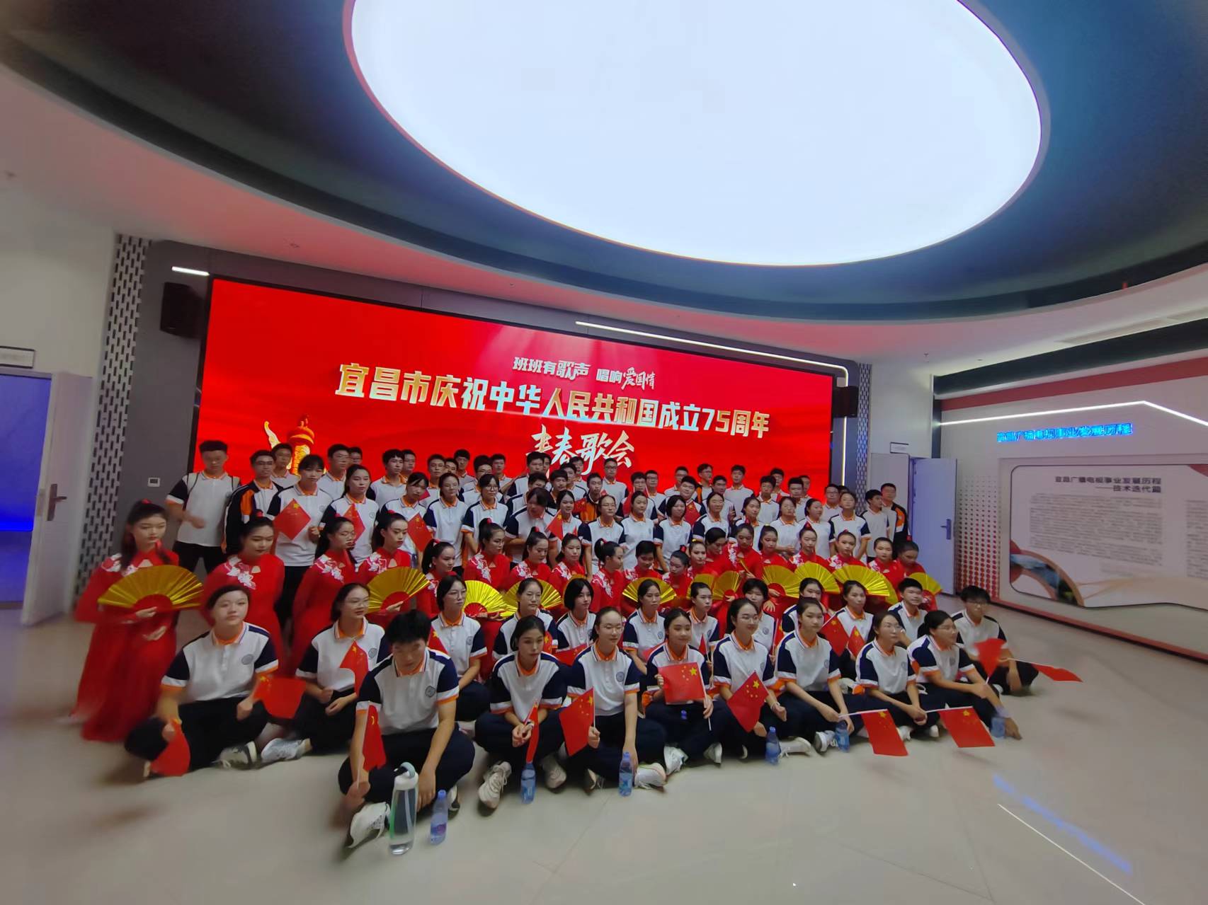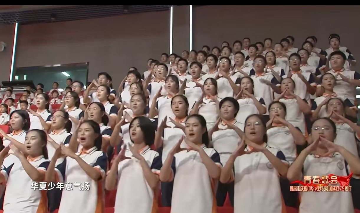 颂歌献祖国,奋进新征程。9月29日,宜昌市外国语高中90余名师生代表参加了在宜昌三峡融媒体中心举办的“班班有歌声 唱响爱国情”——宜昌市庆祝中华人民共和国成立75周年青春歌会,以一首《少年中国说》向祖国母亲献上最诚挚的祝福。