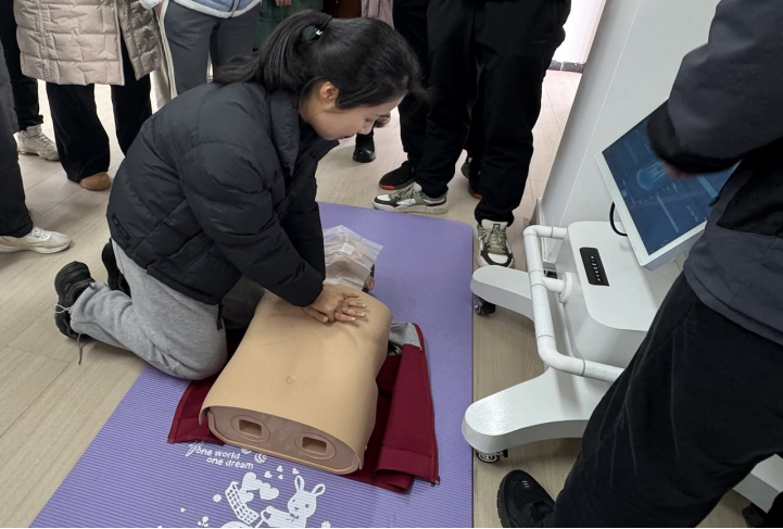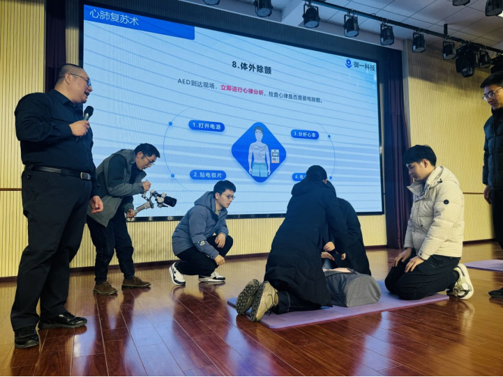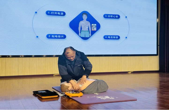 作为急救试点学校,宜昌市外国语高中积极响应急救教育普及号召,在硬件设施建设上大力投入,专门打造急救培训室,配备专业齐全的教学设备,用于开展系统的急救知识教学与实操训练。同时,在校园内人员密集区域合理安装AED装置,为师生的生命安全筑牢一道坚实防线。