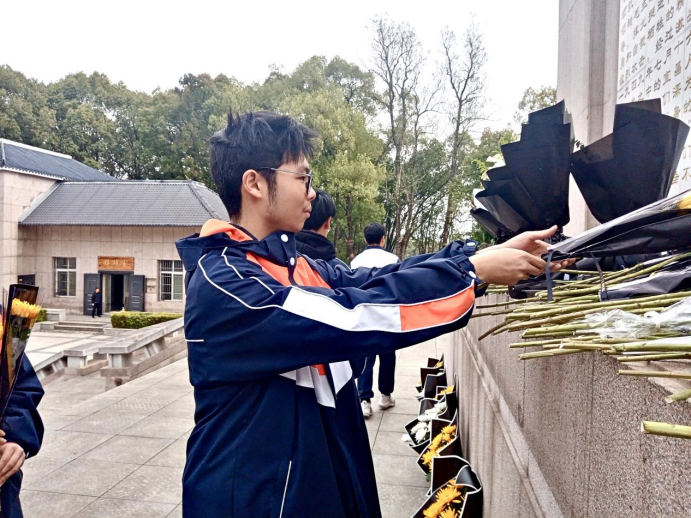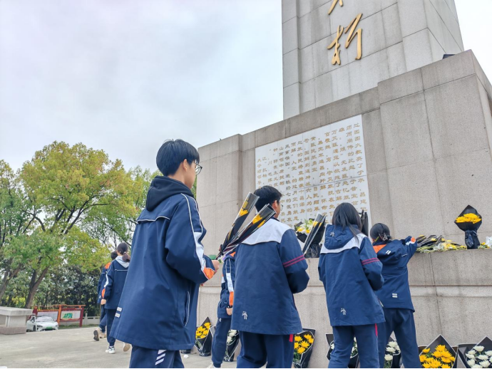 学生们绕碑一周,将手中的白菊轻轻献上。一束鲜花,一份承诺——正如学生代表所言:“他们用青春换山河无恙,我们以奋斗续盛世繁华。”
