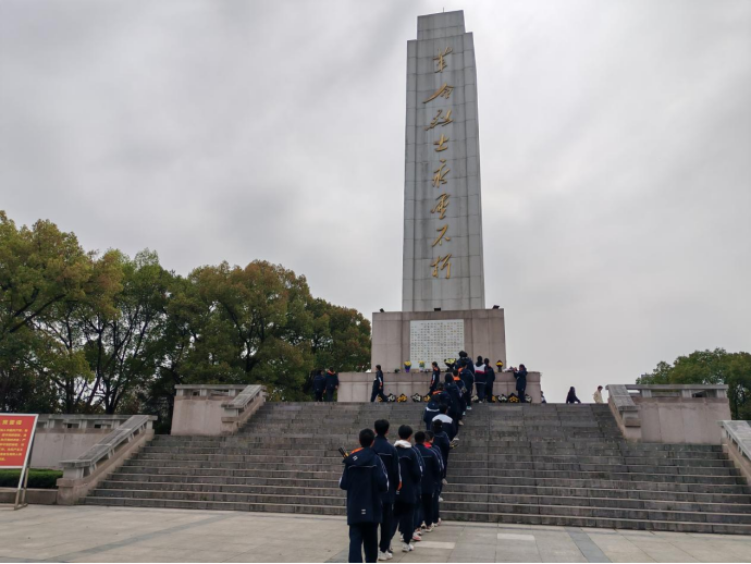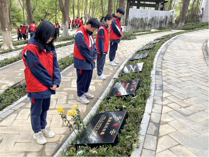 在巍峨的烈士纪念碑前,全体师生肃立默哀一分钟。风过松涛,似在低语英雄的故事。随后,学生代表以铿锵之声宣誓:“继承先烈遗志,矢志报国!”誓言回荡陵园,激荡人心。