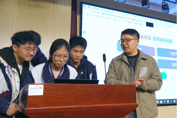 政治组教师覃祥鹏带来了一场精彩的思政课。他以“青春与奉献——弘扬雷锋精神,争做时代先锋”为主题,用有趣的雷锋知识问答促使了同学们主动了解雷锋精神,并通过趣味视频深入阐释新时代雷锋精神的内涵。