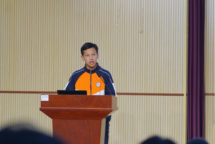 青春宣讲团成员2404班荣柏钧同学结合今日思政课内容,分享了对“青春与奉献”主题的理解和感悟。他动情表示,将以实际行动弘扬雷锋精神,在学习和生活中积极奉献,为实现中华民族伟大复兴的中国梦贡献自己的力量。其真挚发言引发全场共鸣,如星火燎原,点燃了学子们心中的责任担当。