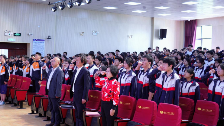 思政教师谭梦琪以“中美关税战”时事热点为切入点,深入剖析总体国家安全观的核心内涵。课堂上,她借助思政小剧场,通过情景模拟、角色互动等生动形式,引导团员们辨识日常生活中可能存在的安全隐患与潜在风险。课程尾声,全体团员面向团旗庄严宣誓:“以青春之名,时刻准备为维护国家安全贡献坚实力量!”