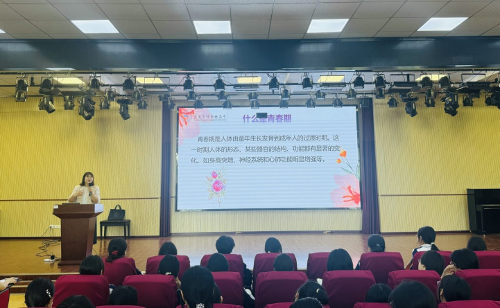 讲座伊始,方老师以亲切温和的话语,为同学们揭开青春期生理变化的神秘面纱。她结合生动的图片与实例,深入浅出地讲解了青春期身体发育的特点和规律,引导女生以科学的态度接纳身体的变化,培养良好的卫生习惯,呵护自身健康。