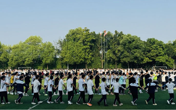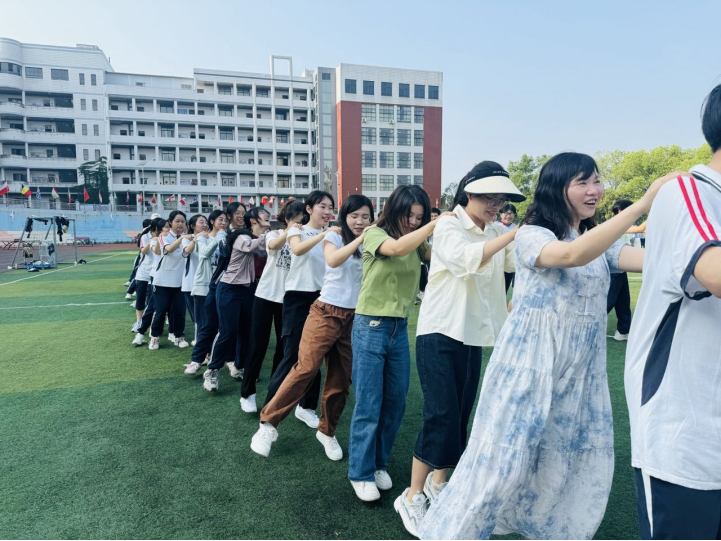 当《兔子舞》的节奏响彻天际,整个外高操场化作沸腾的海洋。班主任们不再站在三尺讲台,而是化身最嗨的领舞者,带着我们甩动双臂,蹦跳向前。所有人手挽手连成巨龙,左左右右的舞步踏碎焦虑,此起彼伏的笑声震破云霄。这不仅是一场舞蹈,更是青春最热烈的宣言,压力再大,也抵不过我们并肩狂欢的力量!