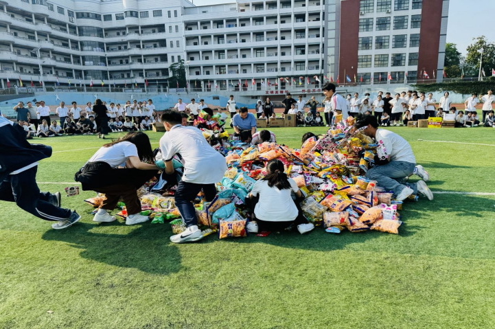 当哨声划破长空,外高操场秒变“零食战场”!班主任和同学们齐上阵,化身“零食小猎手”,上演现实版速度与激情。在这里,没有分数的较量,只有手速的比拼。冲上去,抢下来,把快乐塞进嘴里,让压力随着咀嚼烟消云散。毕竟,吃饱了才有力气,向着梦想全力冲刺。