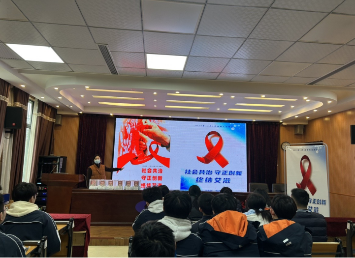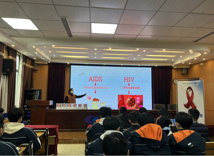 2025年12月1日是第38个“世界艾滋病日”。今年我国宣传活动主题为社会共治、守正创新、终结艾滋。为了让学生更好地了解艾滋病的危害,了解艾滋病的传播途径及更好地预防艾滋病的发生,宜昌市外国语高中于12月2日下午在一楼学术报告厅进行了预防艾滋病专题讲座。本次讲座由联棚卫生院谢美林老师为同学们进行授课。