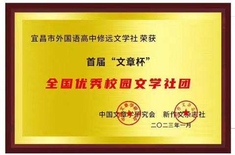 在这“欲暖未全暖”的初春,又传来了一个好消息。宜昌市外国语高中“修远”文学社荣获“全国优秀校园文学社团”称号。这一全国性表彰,是近两个月以来,“修远”文学社频传的喜报之一。