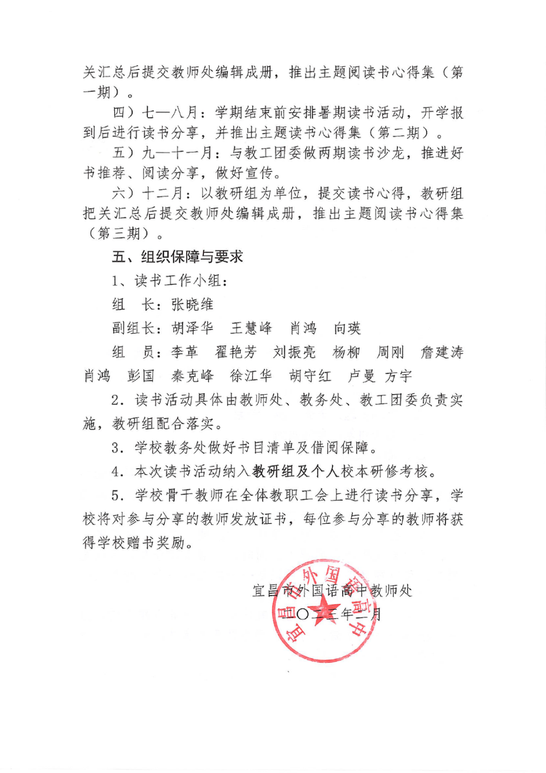 总结:学期结束前安排暑期读书活动,开学报到后进行读书分享,并推出主题读书心得集(第二期)。与教工团委做两期读书沙龙,推进好书推荐、阅读分享,做好宣传。以教研组为单位,提交读书心得,教研组把关汇总后提交教师处编辑成册,推出主题阅读书心得集(第三期)