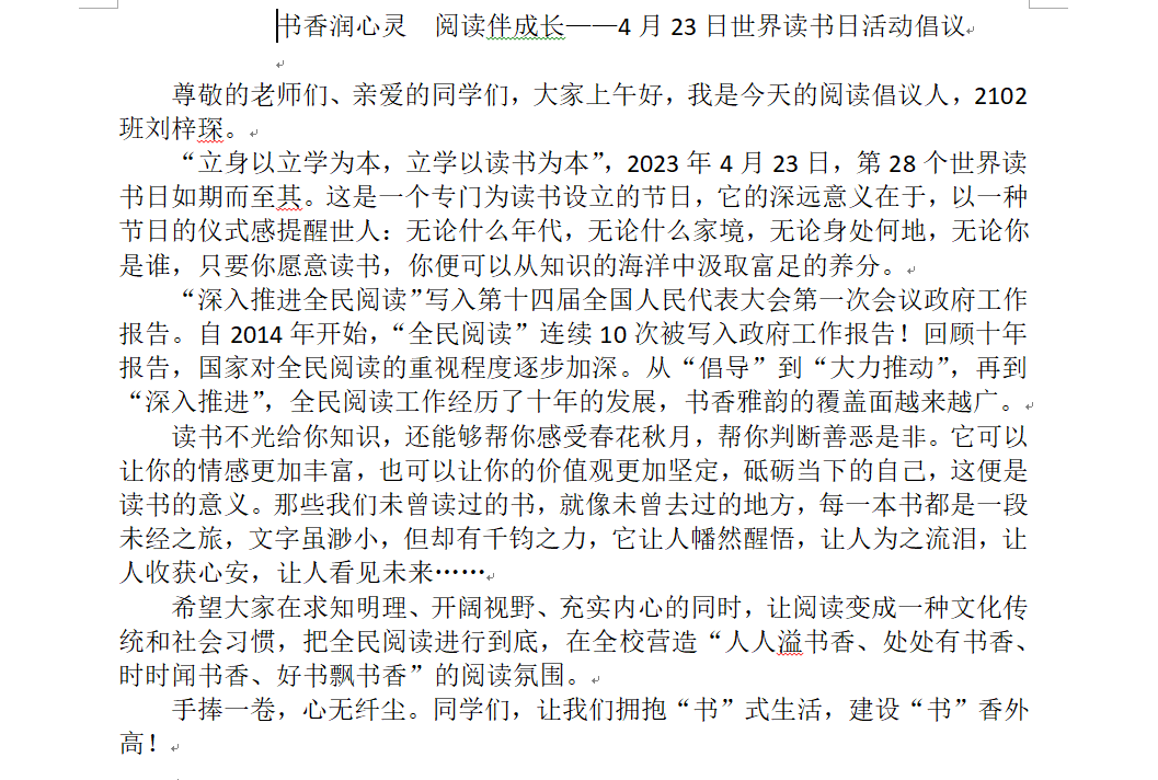 4月23日世界读书日来临之际,学校团委再次向全体学生发起读书倡议。
